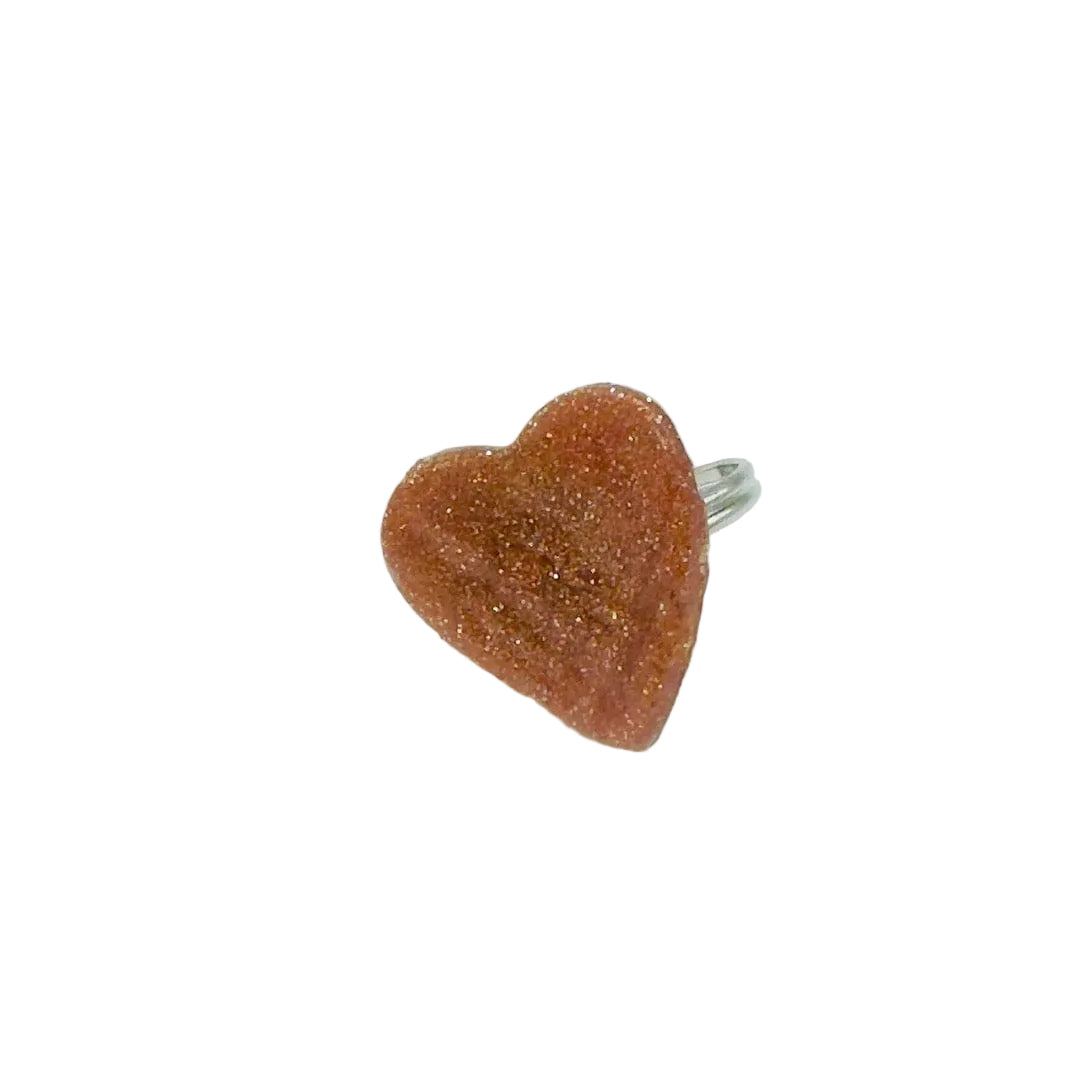Latte Love celebrates the magic of stolen moments in your favorite café. This adjustable ring showcases a luminous light brown glittery polymer clay heart mounted on a lead-free silver band that slides to fit your finger perfectly. Whether you're cramming for exams, meeting friends over cappuccinos, or simply savoring quiet mornings with your mug, this piece speaks to coffee lovers who understand that the best relationships—with people, books, and beverages—happen in cozy spaces. A wearable love letter to your café lifestyle. Give your ring piece the love it will continually need.